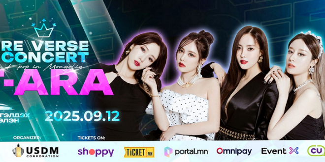 Солонгосын алдарт охидын T-ARA хамтлагийн “T-ARA Re\verse concert in Mongolia” тоглолт 9-р сарын 12-ний өдөр Төв цэнгэлдэх хүрээлэнд зохион байгуулагдах гэж байна.