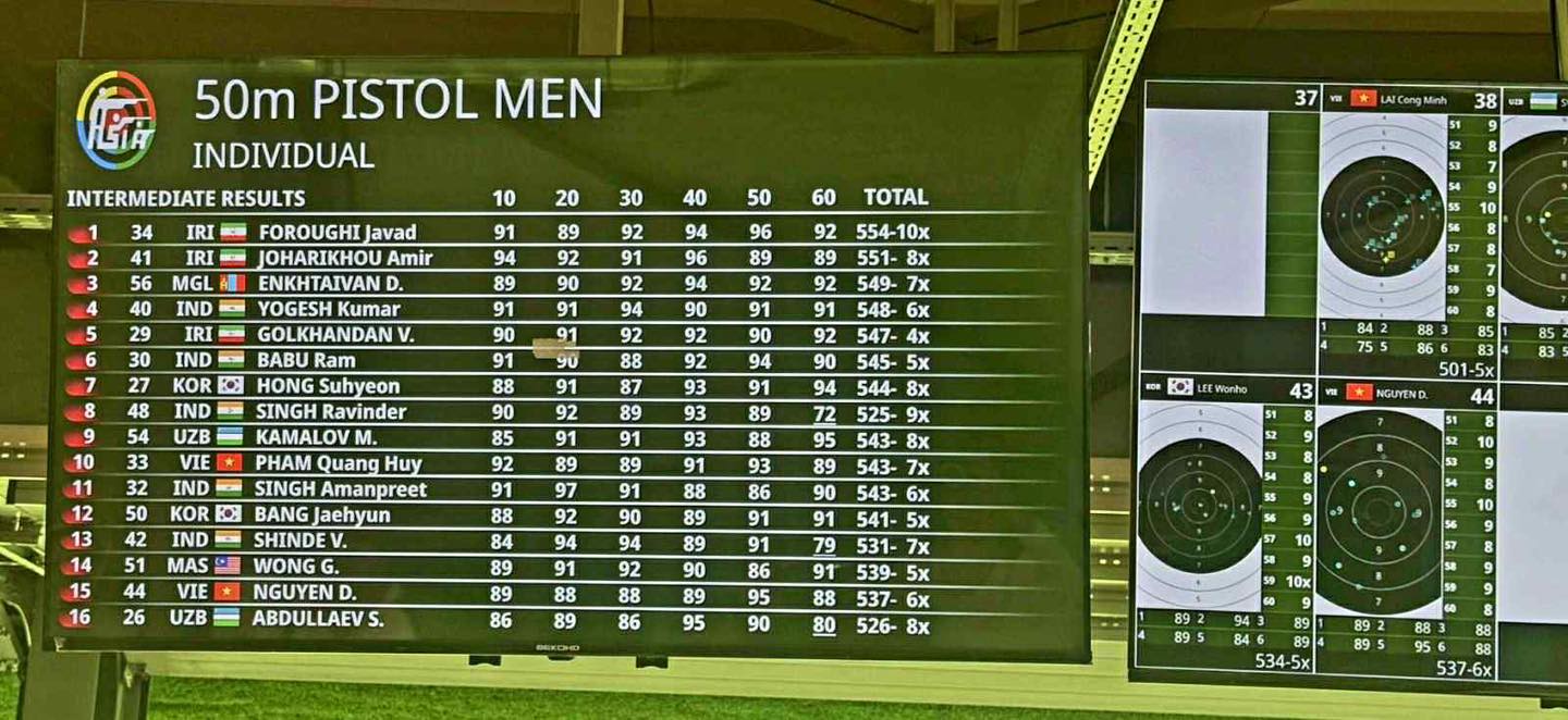 Өнөөдөр тэмцээний насанд хүрэгчдийн эрэгтэйчүүдийн сонгомол гар бууны 50 метрийн дасгалд Үндэсний шигшээ багийн тамирчин Э.Даваахүү хүрэл медаль хүртлээ. Энэ дасгалд Ираны тамирчид эхний хоёр байрыг эзлэв.