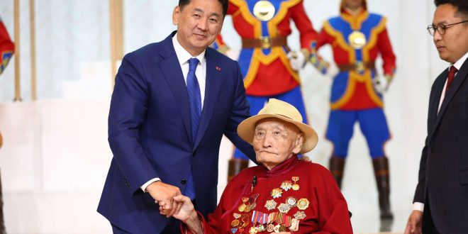 Монгол Улсын Ерөнхийлөгч, Зэвсэгт хүчний Ерөнхий командлагч Ухнаагийн Хүрэлсүх эх орныхоо тусгаар тогтнол, бүрэн эрхт байдлын баатарлаг түүхийн эзэд болсон ахмад дайчдад Чөлөөлөх дайны ялалтын 80 жилийн ойн мэндийг өргөн дэвшүүллээ.