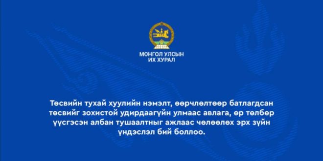 Улсын Их Хурлын хаврын ээлжит чуулганаар Монгол Улсын 2025 оны төсвийн тухай хуульд өөрчлөлт оруулах тухай хуультай хамт Төсвийн тухай хуульд нэмэлт оруулах тухай хуулийг баталсан.