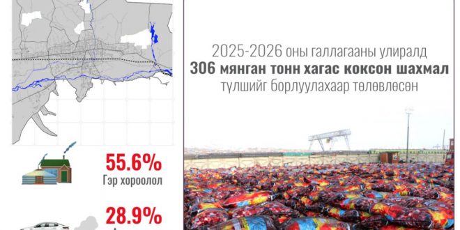 Аравдугаар сарын 1-нээс нийслэлд хагас коксон шахмал түлшийг борлуулна. Хагас коксон шахмал түлш нь ахуйн хэрэглээнд нүүрсийг хэрэглэж болох хамгийн боловсронгуй бүтээгдэхүүн юм. Хагас коксон түлшинд ШУА-ийн Хими, химийн технологийн хүрээлэн болон бусад лабораторийн хийсэн шинжилгээгээр