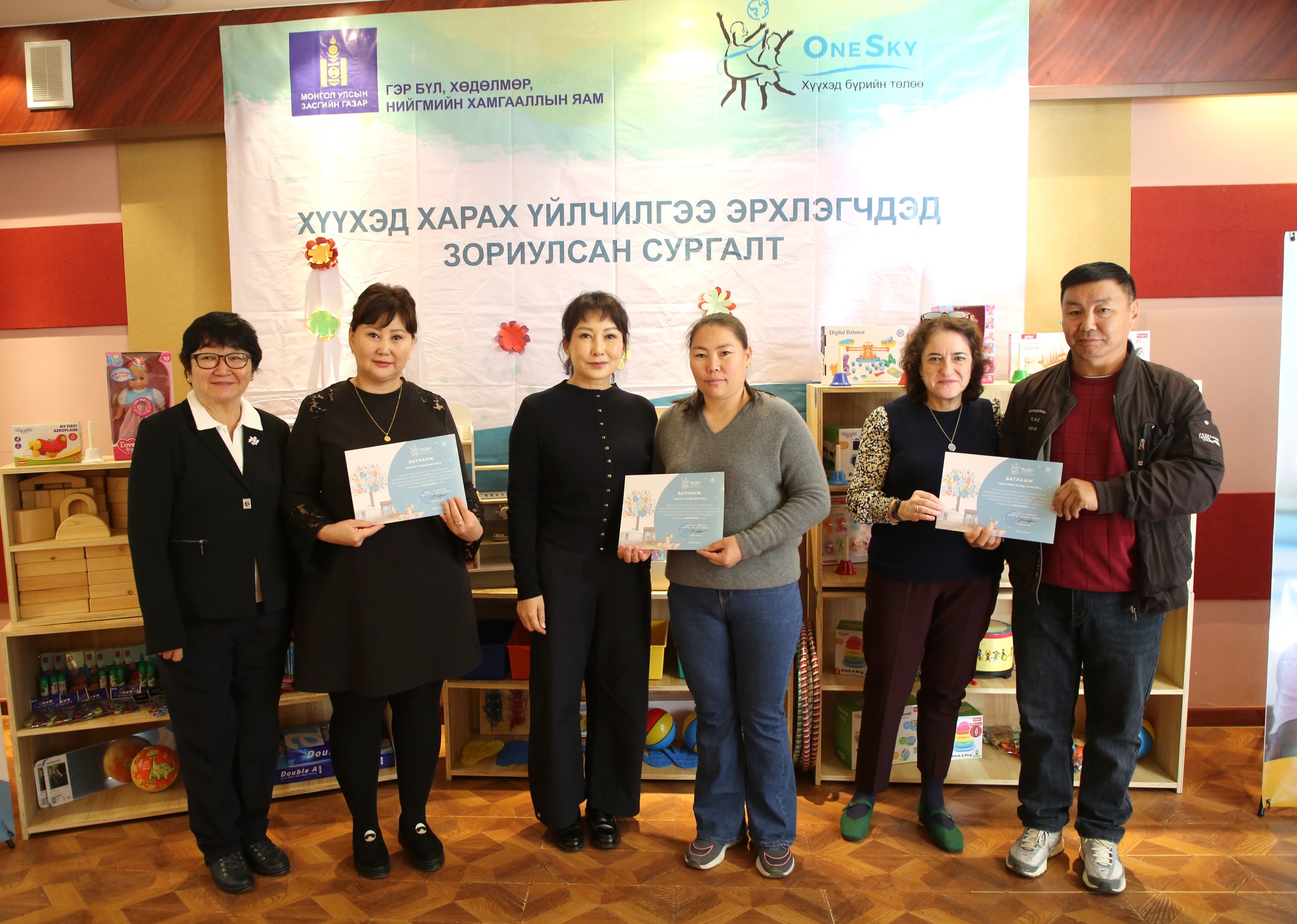 OneSky Mongolia Олон улсын байгууллага нь бага насны хүүхдийн чадавхыг нээн хөгжүүлэх, эрт үеийн боловсрол олгох чиглэлээр эцэг эх, асран хамгаалагчдыг сургаж чадавхжуулж, 2024 оноос Хүүхэд харах төвүүдтэй хамтран Монгол Улс дахь “Хүүхэд харах үйлчилгээ эрхлэгчдийн мэргэжлийн өсөлт, хөгжлийг дэмжих, харилцаа холбоог бэхжүүлэх” хөтөлбөрийг хэрэгжүүлж байна.