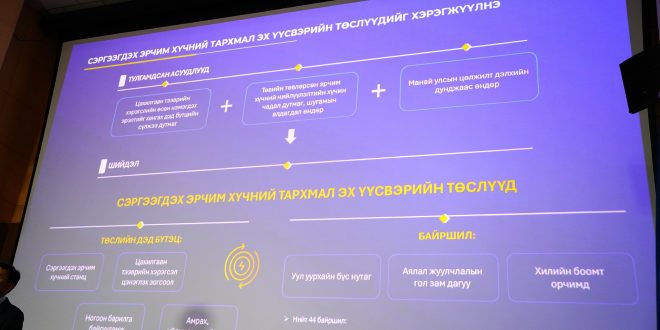 Эдийн засаг, хөгжлийн сайд Н.Учрал “Алсын хараа 2050” Монгол Улсын хөгжлийн урт хугацааны бодлогын баримт бичгийг дагаж гарах хамгийн том баримт бичиг нь энэ таван жилийн хөгжлийн үндсэн чиглэл. Эрх зүйн баримт бичгийн тухайд 2020 оноос хэрэгжиж эхэлсэн Хөгжлийн бодлого, төлөвлөлт, түүний удирдлагын тухай хууль, 2023 оноос хэрэгжиж эхэлсэн Засгийн газар дахь хяналтын тухай хууль гэж тайлбарлалаа.
