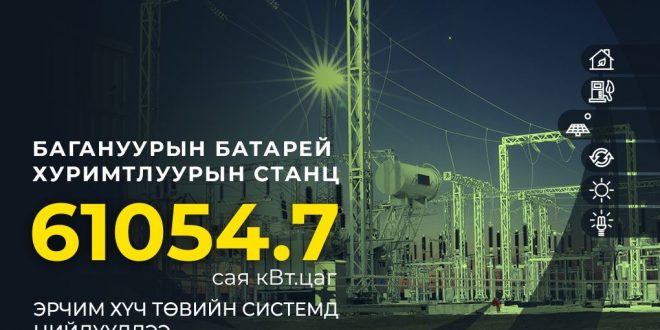 Нийслэлийн Багануур дүүргийн I хорооны нутаг дэвсгэрт “Багануур” цахилгаан түгээх дэд станцыг түшиглэн 50 МВт хүчин чадалтай батарей хуримтлуурын станцыг байгуулж, 2024 оны арванхоёрдугаар сарын 5-ны өдрөөс төвийн системд эрчим хүч нийлүүлж эхэлсэн. Өнөөдрийг хүртэл Багануурын батарей хуримтлуурын станц нийт 61054.7 сая кВт.цаг эрчим хүчийг төвийн бүсийн нэгдсэн системд нийлүүлээд байна.