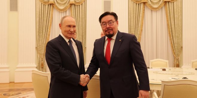 МОНГОЛ УЛСЫН ЕРӨНХИЙ САЙД Г.ЗАНДАНШАТАР ОХУ-ЫН ЕРӨНХИЙЛӨГЧ В.В.ПУТИНД БАРААЛХЛАА