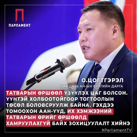 Сүүлийн үед дуншаад байгаа хоёр хуулийн төсөл иргэдийн дунд хэлэлцүүлэг үүсгээд байгаа талаар өгүүлэх гэсэн юм. Үүний нэг нь УИХ-д суудалтай АН-ын бүлгийн дарга О.Цогтгэрэлийн санаачилсан “Татварын өршөөлийн тухай хууль”.
