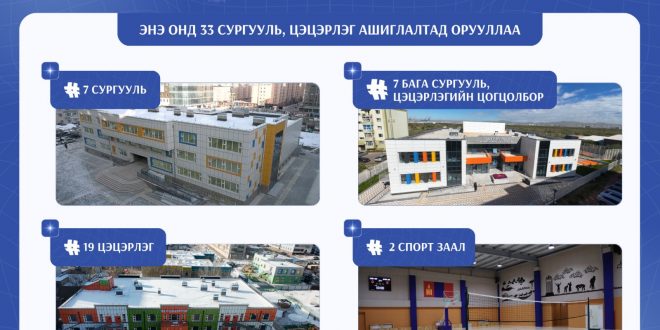 Нийслэлийн хэмжээнд энэ онд 7 сургууль, 19 цэцэрлэг, 7 бага сургууль, цэцэрлэгийн цогцолбор, 2 спорт заал, нийт 35 барилга байгууламжийг ашиглалтад хүлээлгэн өглөө. Ингэснээр нийтдээ 10 мянга орчим хүүхэд хамран сурах тойрогтоо сургууль, цэцэрлэгт суралцах боломжтой боллоо. Ялангуяа Нисэх, Яармаг зэрэг сургууль, цэцэрлэгийн хүрэлцээгүй газруудад сургууль, цэцэрлэг барихад анхаарч ажиллалаа.
