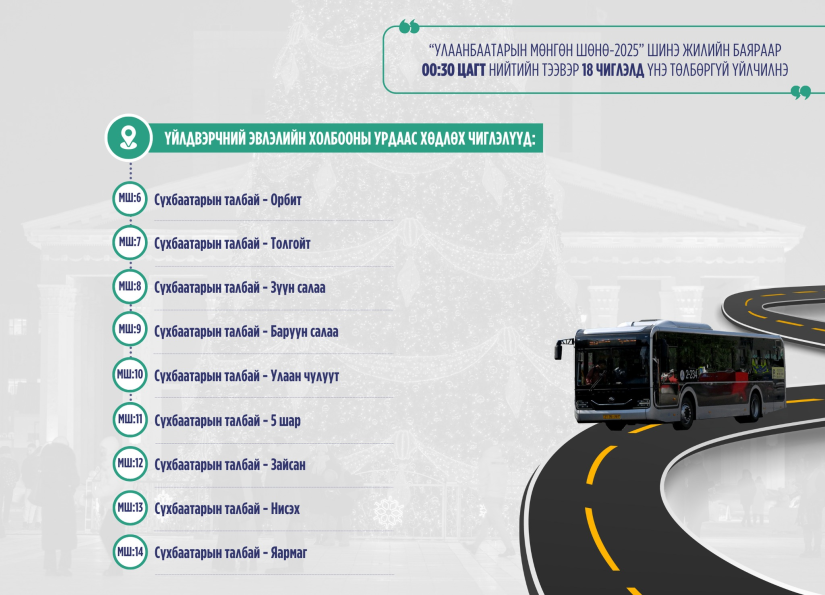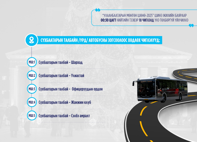 НЗДТГ-ын мэдээлснээр, тоглолтын дараа 18 чиглэлд их багтаамжийн 18 автобус Д.Сүхбаатарын талбайн баруун, зүүн болон урд зогсоолоос суурьшлын цэгүүд рүү үнэ төлбөргүй үйлчлэх ажээ.