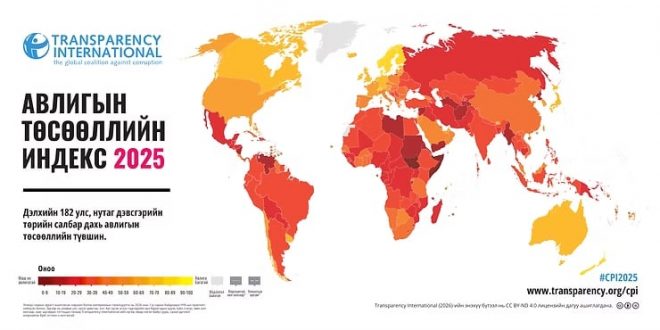 Транспэрэнси Интернэшнл Монгол байгууллагаас 2026 оны Авлигын төсөөллийн индекс (АТИ)-ийн үр дүн, мэдээллийг www.transparency.mn вэбсайт, албан ёсны сошиал медиа сувгаараа цацлаа.