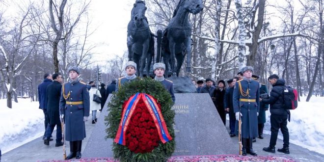 ОХУ-д албан ёсны айлчлал хийж буй Улсын Их Хурлын дарга Н.Учрал тэргүүтэй төлөөлөгчид өнөөдөр Москва хотын Хүндэтгэлийн дэнж дээрх “Ялалтын цэцэрлэгт хүрээлэн”-д Монголын ард түмнээс Оросын ард түмэнд бэлэг болгон барьсан “Ялалтад тэмүүлсэн морьд” хөшөөнд цэцэг өргөв.