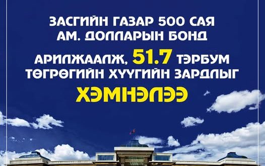 Нийт 500 сая ам.долларын бондыг 6 жилийн хугацаатай, 5.95 хувийн хүүтэйгээр амжилттай арилжаалан, 2026 онд төлөгдөх 5.125 хувийн хүүтэй “Номад” бонд, 2028 онд төлөгдөх 8.65 хувийн хүүтэй “Сенчири-2” бондоос 321.6 сая ам.долларыг тус тус буцаан худалдан авах өрийн зохицуулалтыг хийлээ.