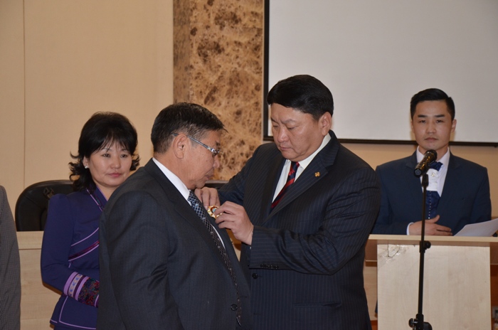 Монгол улс Үндэсний эрх чөлөө, тусгаар тогтнолоо сэргээн тогтоосны 103 жил, Нийслэл хотын 375 жилийг тохиолдуулан Монгол улсын Ерөнхийлөгчийн зарлигаар төрийн дээд одон, медалиар шагнагдсан хүмүүст өнөөдөр/2014.12.26/ шагналыг гардуулан өглөө.