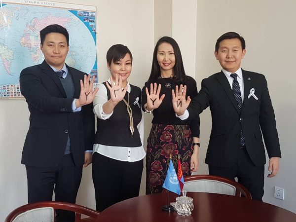 Монгол Улс 1998 оноос тус аянд нэгдсэн бөгөөд энэ жилийн аяныг “Хүчирхийлэлд үгүй гэж хэлье!” уриан дор тэмдэглэн өнгөрүүлж байгаатай холбогдуулан Гадаад харилцааны яамны албан хаагчид уг аянд нэгдэж, манлайлан оролцож байна.