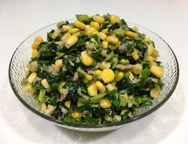 Ногоонуудаа өөрсдийн хүссэн хэмжээгээр хэрчээд бага зэрэг давсаар амтлан ургамлын тостой хутгаад л бэлэн болно. Хурц махан хоолтой төгс зохицно. Укропны оронд ногоон сонгино хийсэн ч гоё болно.