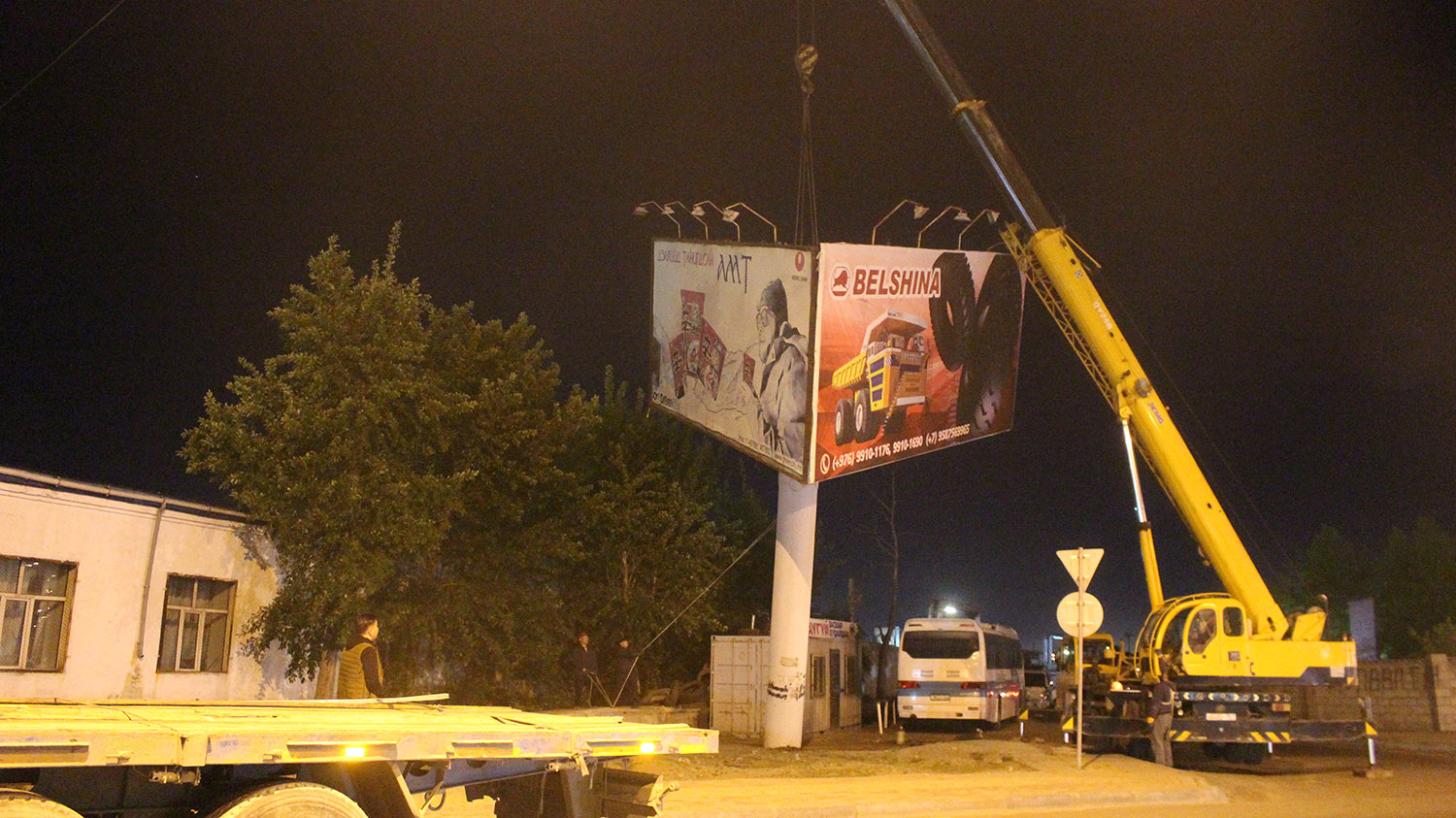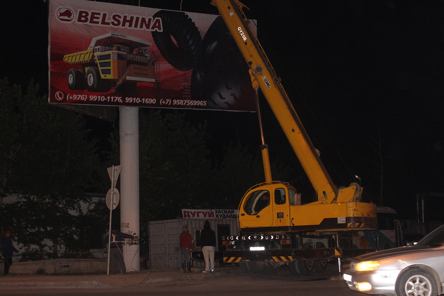 Нийслэлийн ИТХ-ын төлөөлөгч Н.Батсүмбэрэлээр ахлуулсан ажлын хэсэг өнгөрсөн шөнө Улаанбаатар хотын Захирагчийн ажлын албатай хамтран нарны зам дагуу байршуулсан “Грийн Сити” ХХК-ийн 4×9 метр хэмжээтэй хоёр талт, Чингүнжавын гудамж дагуу байршуулсан “Монос” ХХК-ийн 3×6 метр хэмжээтэй хоёр талт зөвшөөрөлгүй гадна зар сурталчилгааны байгууламжийг албадан буулгалаа.