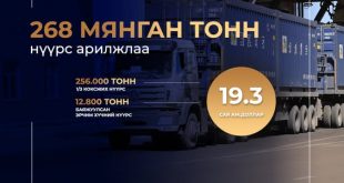 268 МЯНГАН ТОНН НҮҮРС 19.3 САЯ АМ.ДОЛЛАРООР АРИЛЖЛАА