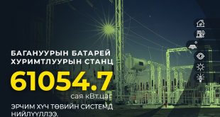 Нийслэлийн Багануур дүүргийн I хорооны нутаг дэвсгэрт “Багануур” цахилгаан түгээх дэд станцыг түшиглэн 50 МВт хүчин чадалтай батарей хуримтлуурын станцыг байгуулж, 2024 оны арванхоёрдугаар сарын 5-ны өдрөөс төвийн системд эрчим хүч нийлүүлж эхэлсэн. Өнөөдрийг хүртэл Багануурын батарей хуримтлуурын станц нийт 61054.7 сая кВт.цаг эрчим хүчийг төвийн бүсийн нэгдсэн системд нийлүүлээд байна. Багануурын батарей хуримтлуурын станц нь шөнө эрчим хүчний хэрэглээ …
